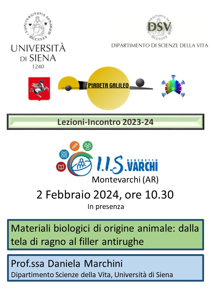 2 febbraio: presso IIS Varchi, Montevarchi, il seminario nell’ambito di Pianeta Galileo della Prof.essa Marchini: Materiali biologici di origine animale: dalla tela di ragno al filler antirughe.